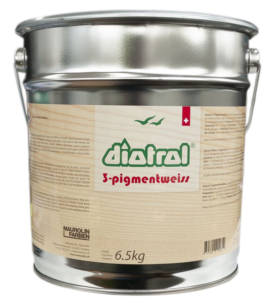 Diotrol 3-Pigmentweiss ist eine Holzgrundierung und ein Renovationsgrund auf Alkydharzbasis. Geruchsmild. Kann als Haftvermitler und Zwischenanstrich verwendet werden. Schlusslackierung mit Diotrol Naturöl-Lasur eingefärbt oder üblichen Kunstharz- oder Ölfarben.