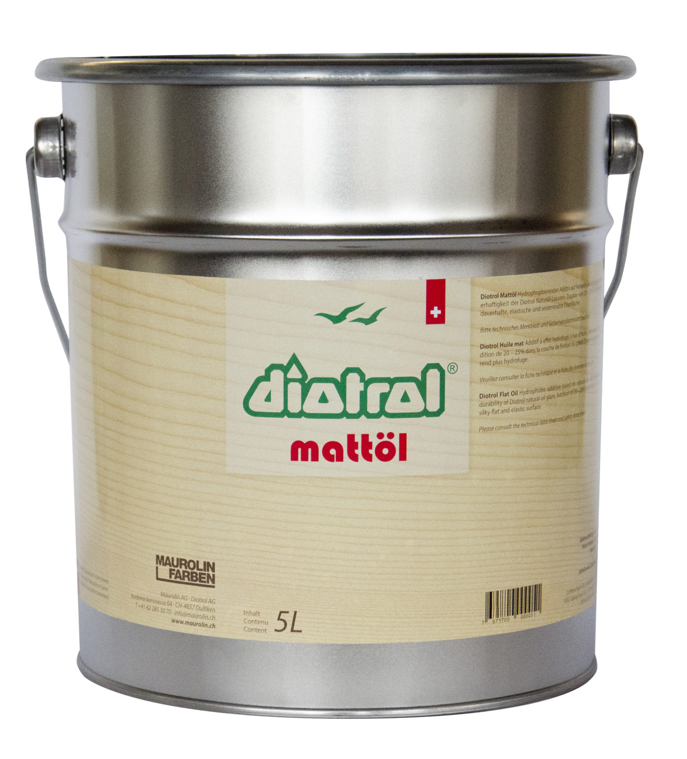 Diotrol Mattöl ist ein hydrophobierendes Additiv mit Spezialhartwachsen auf Naturölbasis. Erhöht die Dauerhaftigkeit der Diotrol Naturöl-Lasuren. Zugabe von 20% in den Schlussanstrich erzeugt eine dauerhafte, elastische und seidenmatte Oberfläche.