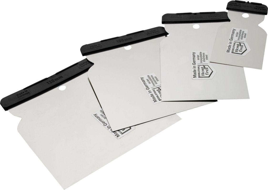 Japanspachtel mit säurefestem Kunststoffrücken und flexiblem Stahlblatt.
