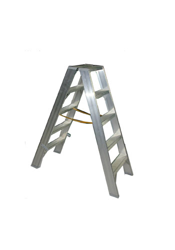 Stufenstehleiter (Massive-Profi-Qualität, Ausführung für Handwerk, Lager und Montagen) beidseitig begehbar.