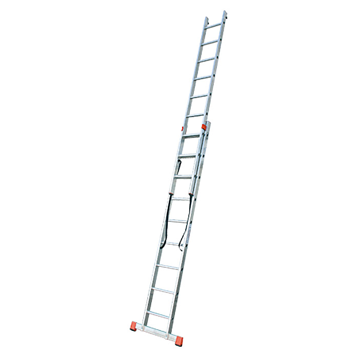 Diese Mehrzweckleiter ist einsetzbar als Anlege-, Schiebe- u. Bockleiter mit Ausschiebbarem Leiternteil.