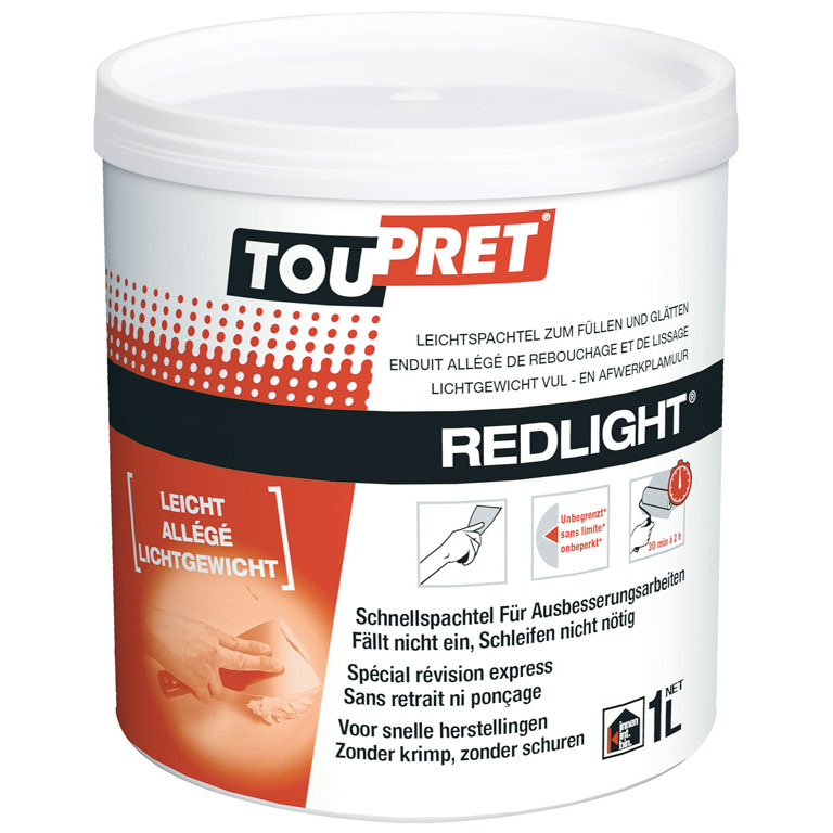 Gebrauchsfertige, superleichte Spachtelmasse für eine einfache und professionelle Reparatur von Rissen und Löchern in nur einem Arbeitsgang.