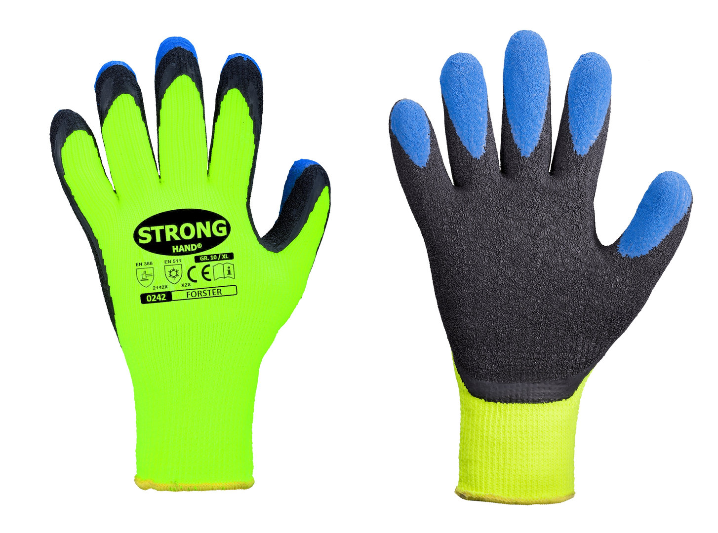 Beschichtung: Schrumpf-Latex, schwarz und doppelt beschichtet an den Fingern, blau