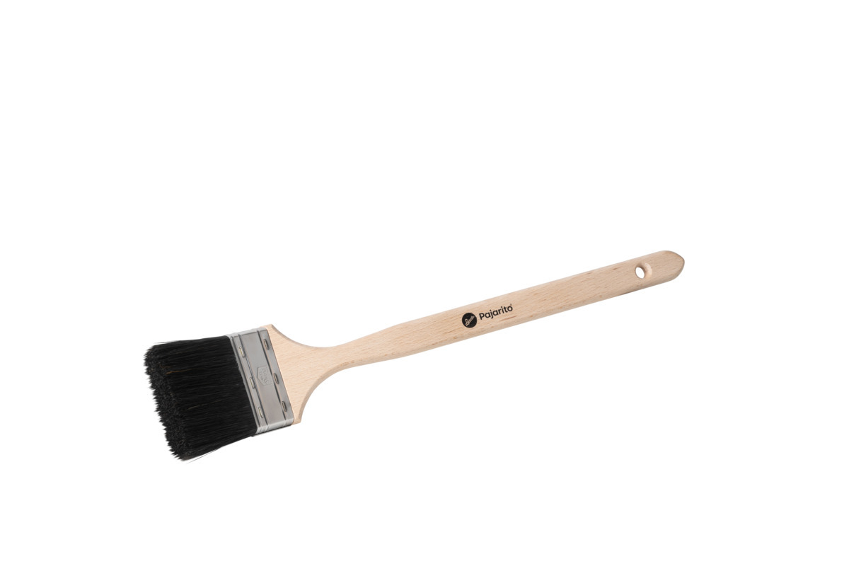 Bestehend aus einer Borstenmischung von Chinaborste und Kunstfasern verbunden mit einer gebogenen rostfreien Zwinge.