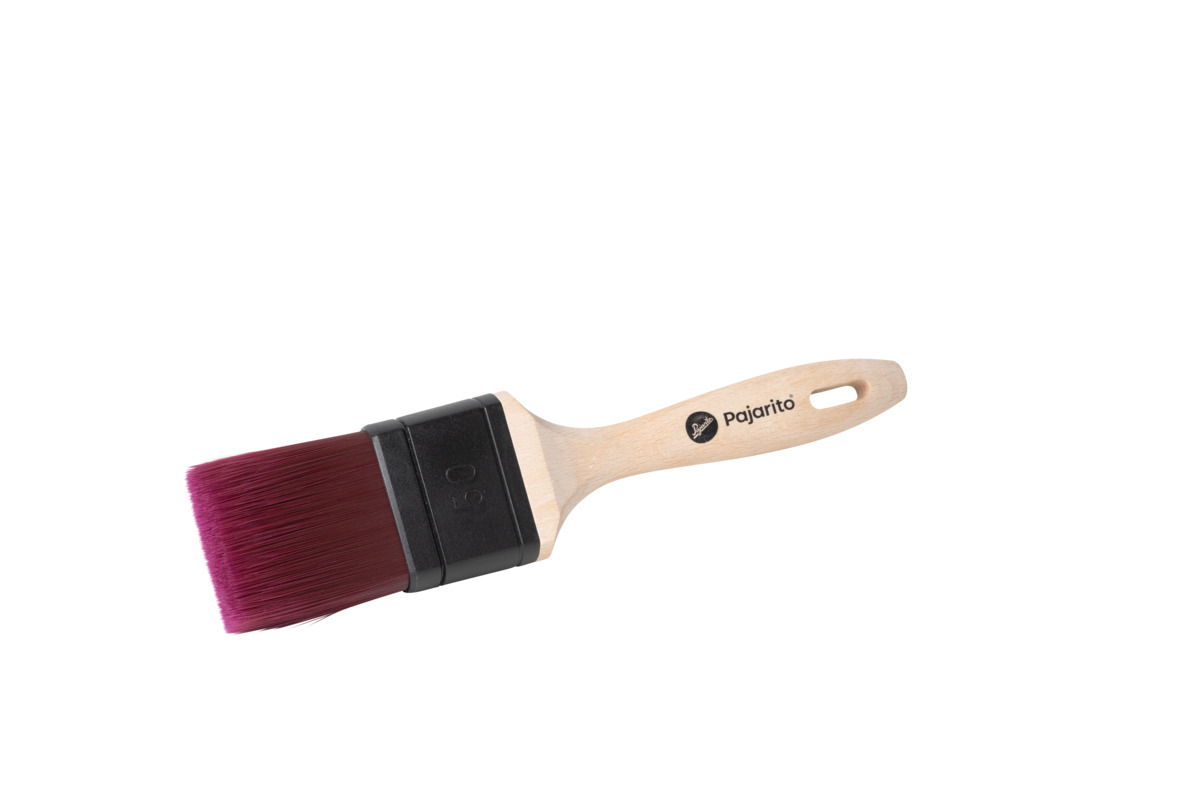 Bestehend aus feinen Kunstfasern mit schwarzer Kunststoff-Fassung, rohem Holzstiel.