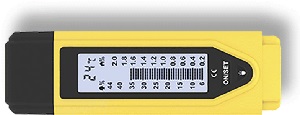 Feuchtigkeitsmesser für Holz- und weichere Baustoffe wie z.B. Gips, Putz, Estrich etc., LCD Display, Digital-Thermometer, LED Taschenlampe, Autoabschaltung, Schutzkappe, Clip, Batterien und Kurzanleitung.