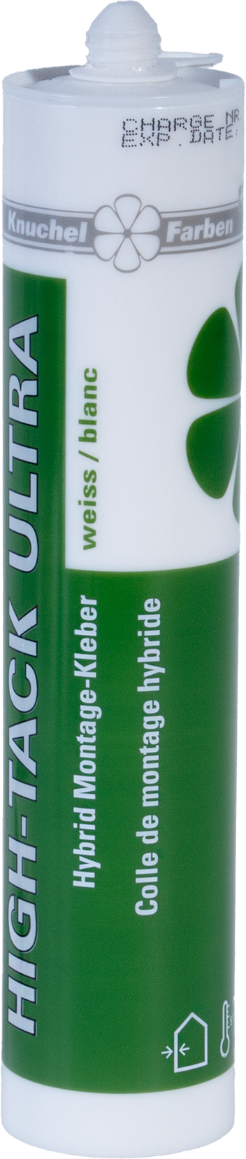 HIGH-TACK ULTRA ist ein extrem hochwertiger Klebstoff für den professionellen Einsatz und eignet sich für das Verkleben von Baustoffen am Bau wie auch von Werkstoffen in der Industrie. Er bietet eine ausgezeichnete Witterungs- und Feuchtigkeitsbeständigkeit und bleibt in einem sehr breiten Temperaturbereich von -40 °C bis +90 °C stabil. HIGH-TACK ULTRA basiert auf einer Hybrid-Technologie, der unter Einwirkung von Feuchtigkeit zu einem dauerhaft elastischen und gummiartigen Kleber aushärtet. HIGH-TACK ULTRA ist nahezu geruchslos, ist nicht korrosiv in Verbindung mit Metallen und überzeugt mit einer extrem hohen Anfangshaftung, ist nicht verfärbend sowie frei von Isocyanaten, Phthalaten, Lösungsmitteln und Silikonen.